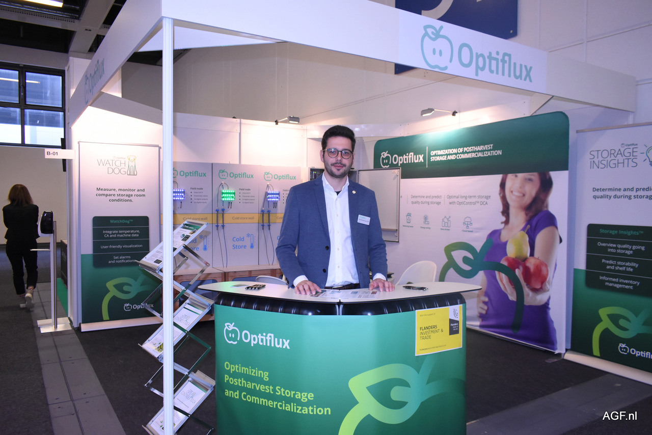 Niels Bessemans stond met zijn bedrijf Optiflux voor het eerst op de beurs. De ondernemer was dik tevreden over zijn contacten. Zo presenteerde Niels de nieuwe gecontroleerde bewaartechniek voor groenten en fruit. Het fruit wordt bewaard met een zo laag mogelijk zuurstofgehalte wat resulteert in maximale kwaliteitsbehoud zonder ontwikkeling van stoornissen en bijsmaken.