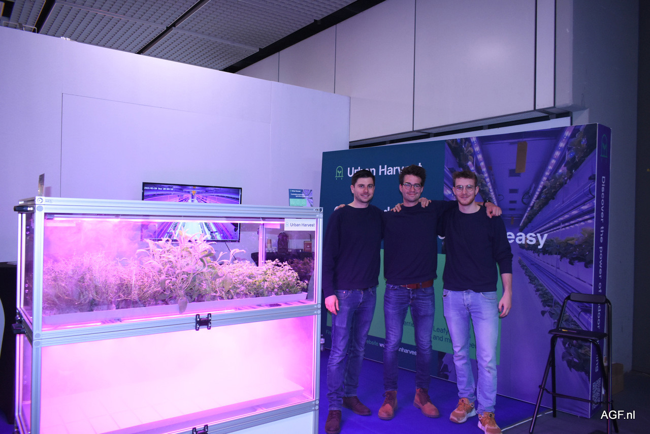 De mannen van Urban Harvest gaven aan het naar hun zin te hebben op Fruit Logistica. Olivier Paulus, Tom Martens en Benjamin Flasse vertellen vol enthousiasme aan iedereen die het wil horen over het wel en wee van het bedrijf.