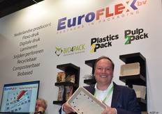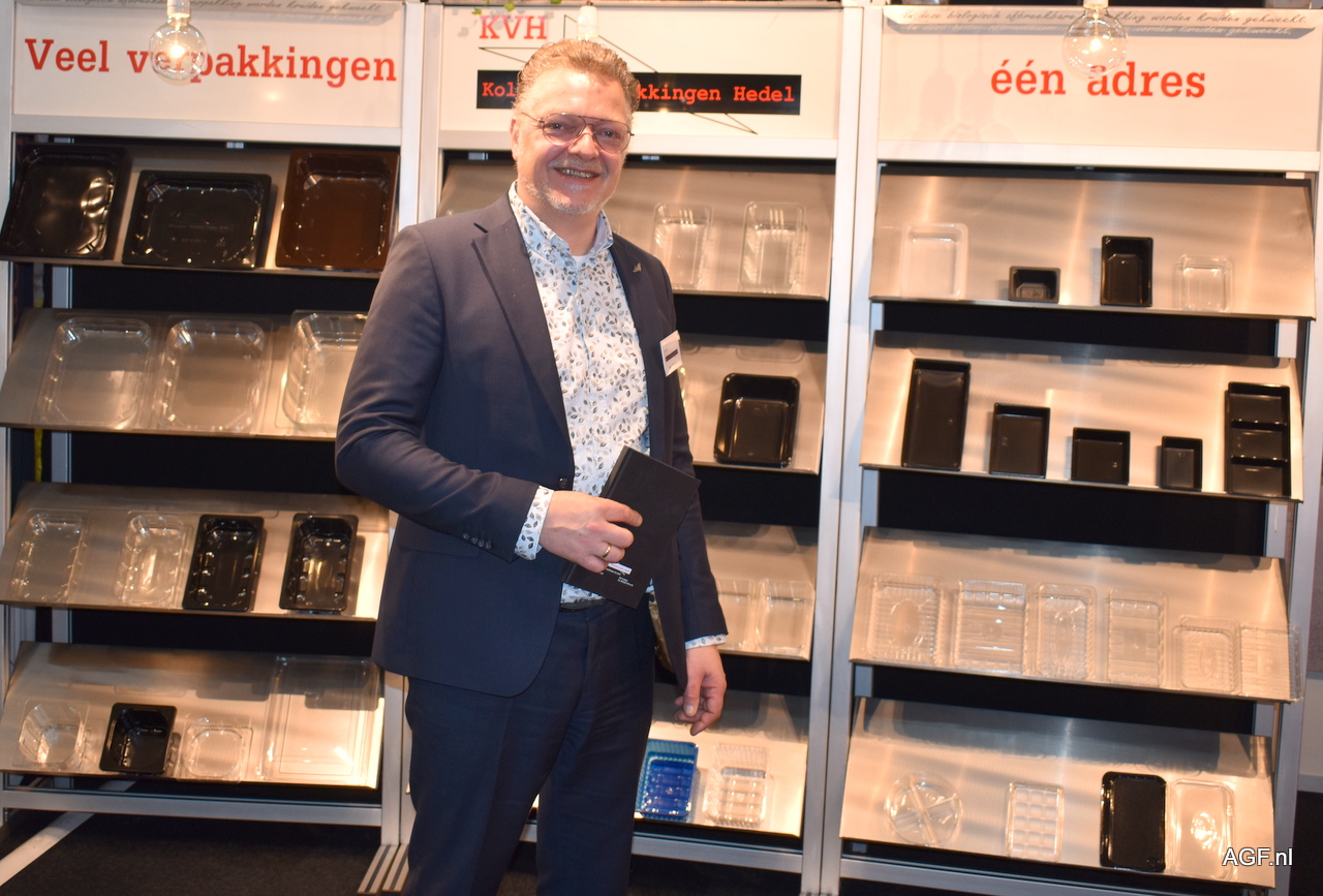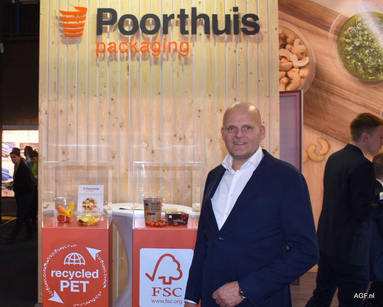 Gerrit van Woerden van Poorthuis Packaging. Poorthuis levert kunststof (RPet-PP) en kartonnen verpakkingen voor de AGF sector. Alles is FSC gekeurd.