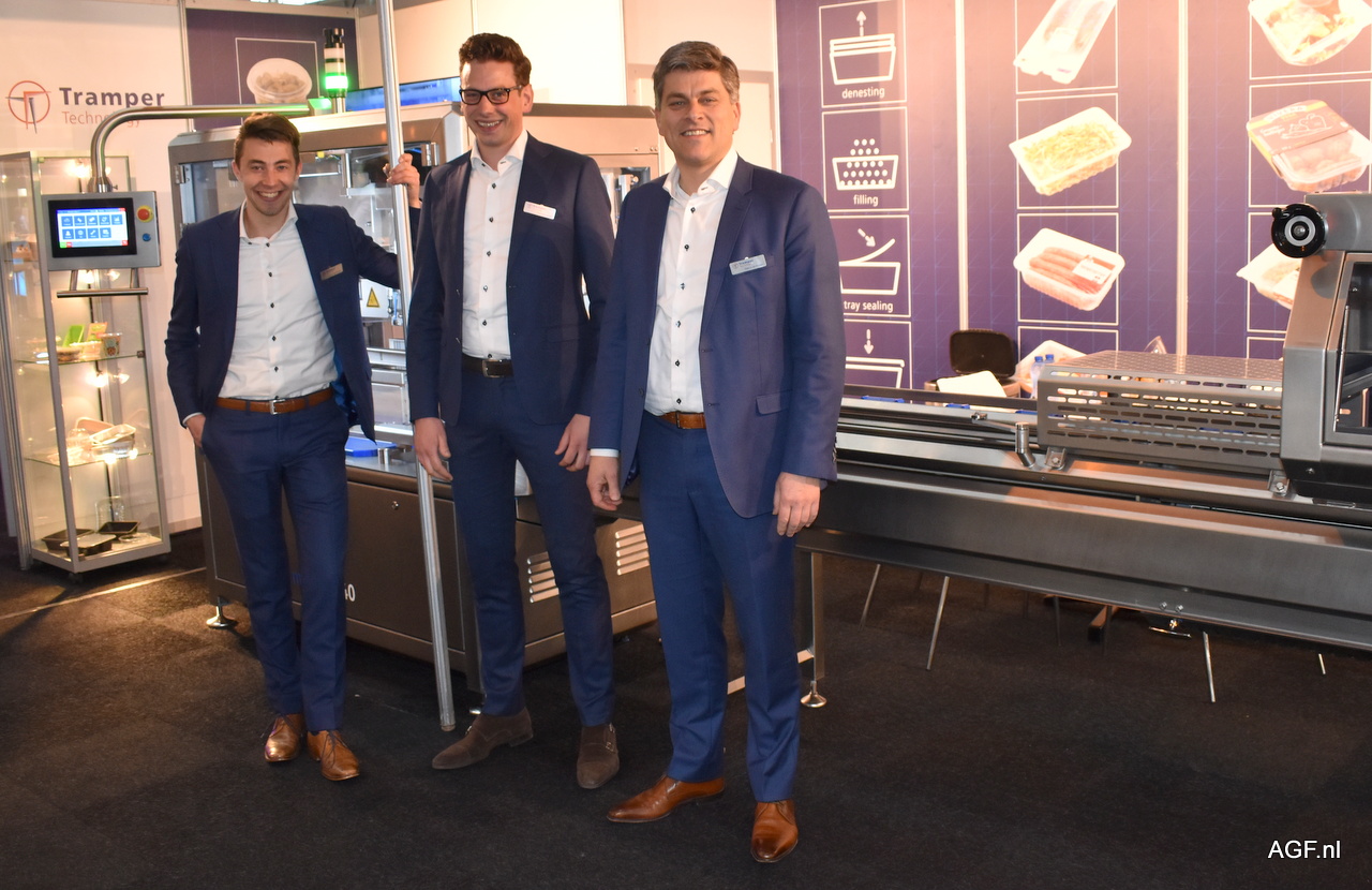 Tramper Techniek; Laurens van Keulen, Rolf Sonneveld en Marco de Koster. Op de stand stond de S-340 topsealmachine opgesteld. Op deze machine kunnen ook Halopack kartonnen schalen worden geseald.