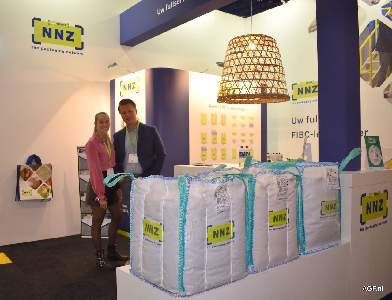 Meilin Driessen en Roy Coomans van NNZ. Op Empack worden meestal de industriële verpakkingen gepromoot bij NNZ. De AGF gerelateerde verpakkingen zien we op andere beurzen zoals Fruit Logistica.