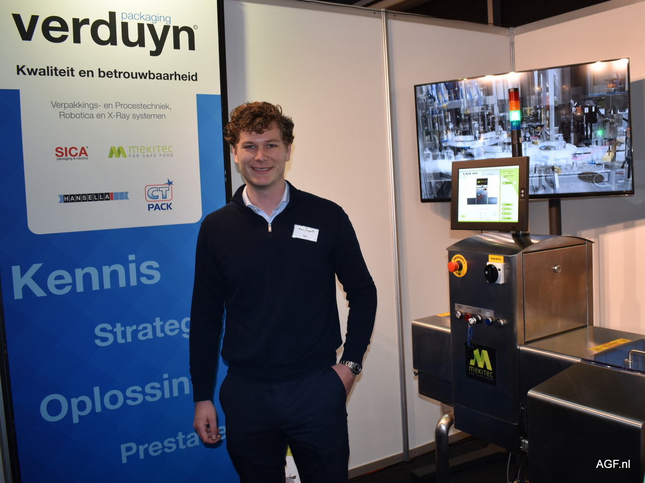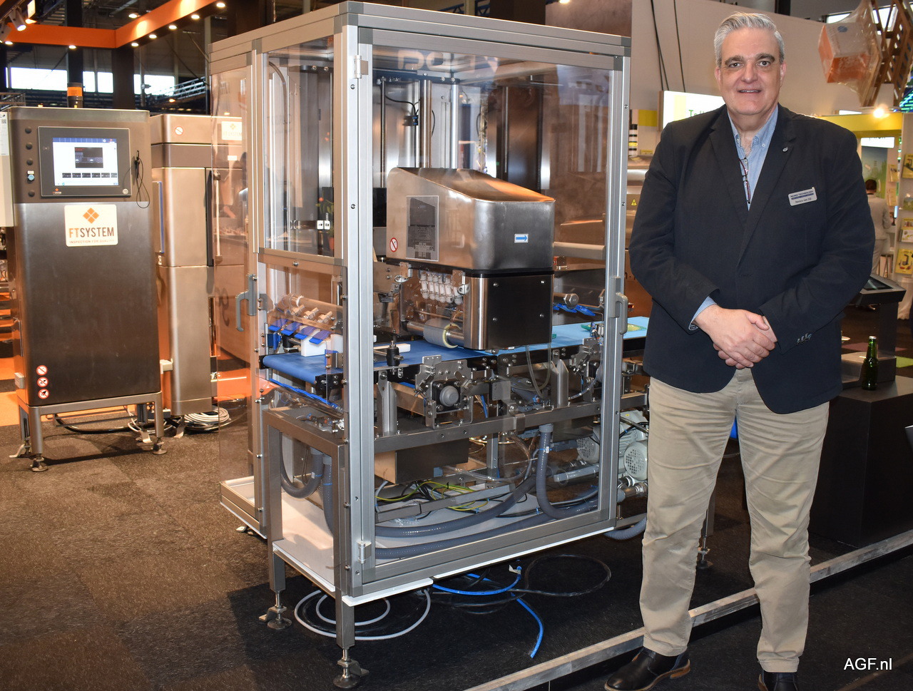 Remco van Zijl van Mundi Technology. Het bedrijf bouwt verschillende machine toepassingen voor de AGF verwerkende industrie. Lek Detectie Systeem van FT System is daar een voorbeeld van. Het systeem detecteert CO2 en O2, hiermee kunnen met gebruik van een aandrukrol lekkages in verpakkingen worden opgespoord. Het systeem kan ook defecten aan de topseal detecteren, etiketteninspectie en metaaldetectie uitvoeren.