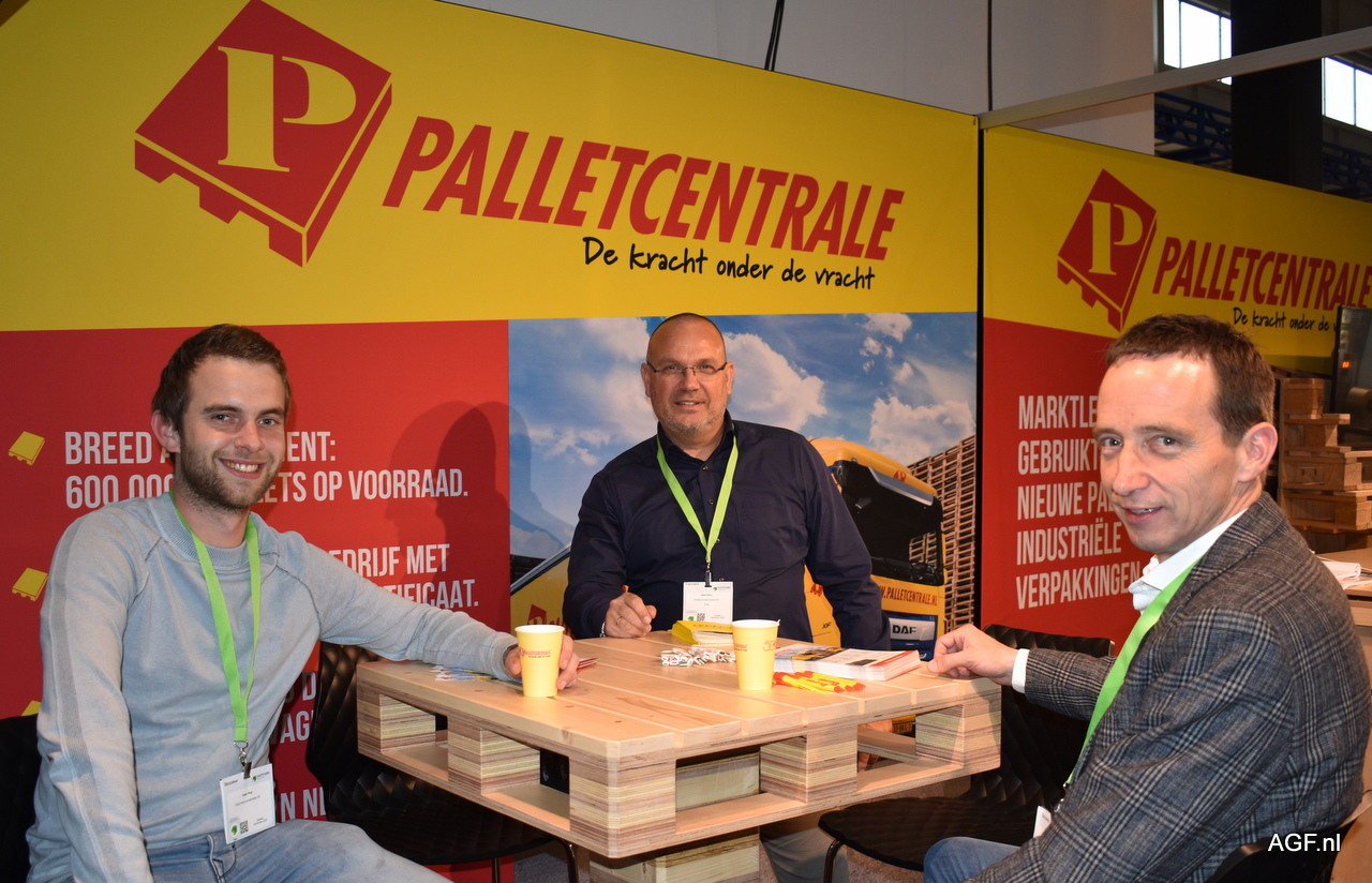 Jaap Hop en Johan Hooijmans op bezoek bij Palletcentrale. Gert Klein van Palletcentrale vertelt dat het bedrijf nieuwe- en gebruikte pallets verkoopt en industriële verpakkingen.