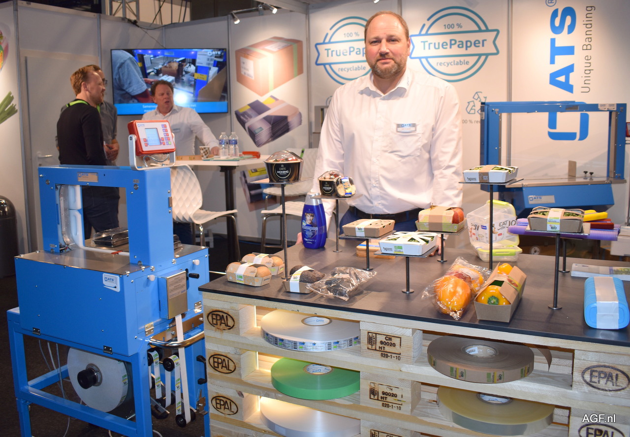 Kees Kramer van ATS. Nieuw is de True Paper, een 100% recyclebare band zonder coatings. Deze band is goed bestand tegen vocht en er is weinig materiaal voor nodig.