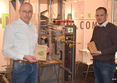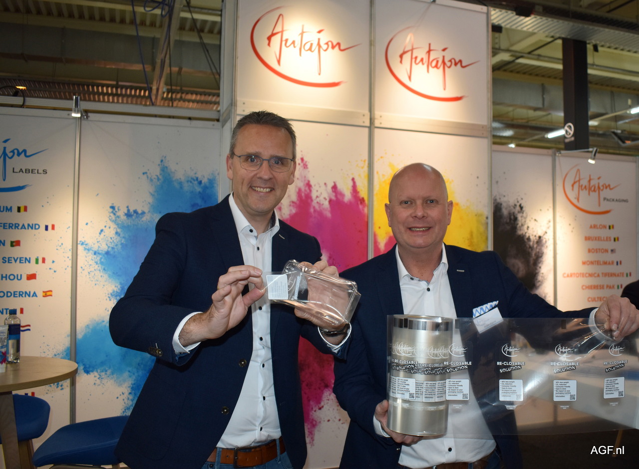 Danny van de Ruijt en Arjan Fieret van Autajon. Ze laten een hersluitbare folie zien voor een topseal/flowpack kruidenverpakking.