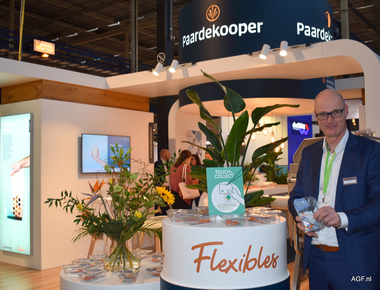Paardekooper BV, Leo van der Meer laat ons de Flexibles zien van dit bedrijf. Onder de Flexibles vallen folies, topseal en flowpackfolies met laserperforaties en in 8 kleuren bedrukt. Leo heeft een hersluitbare topsealfolie van monoPET materiaal vast. Deze folie kan gebruikt worden voor zachtfruit, snackgroenten, gesneden fruit, nootjes of kruiden. De verpakking is ongeveer 20 keer hersluitbaar en kan op alle mogelijke vormen schaaltjes en op de bestaande machines verwerkt worden.