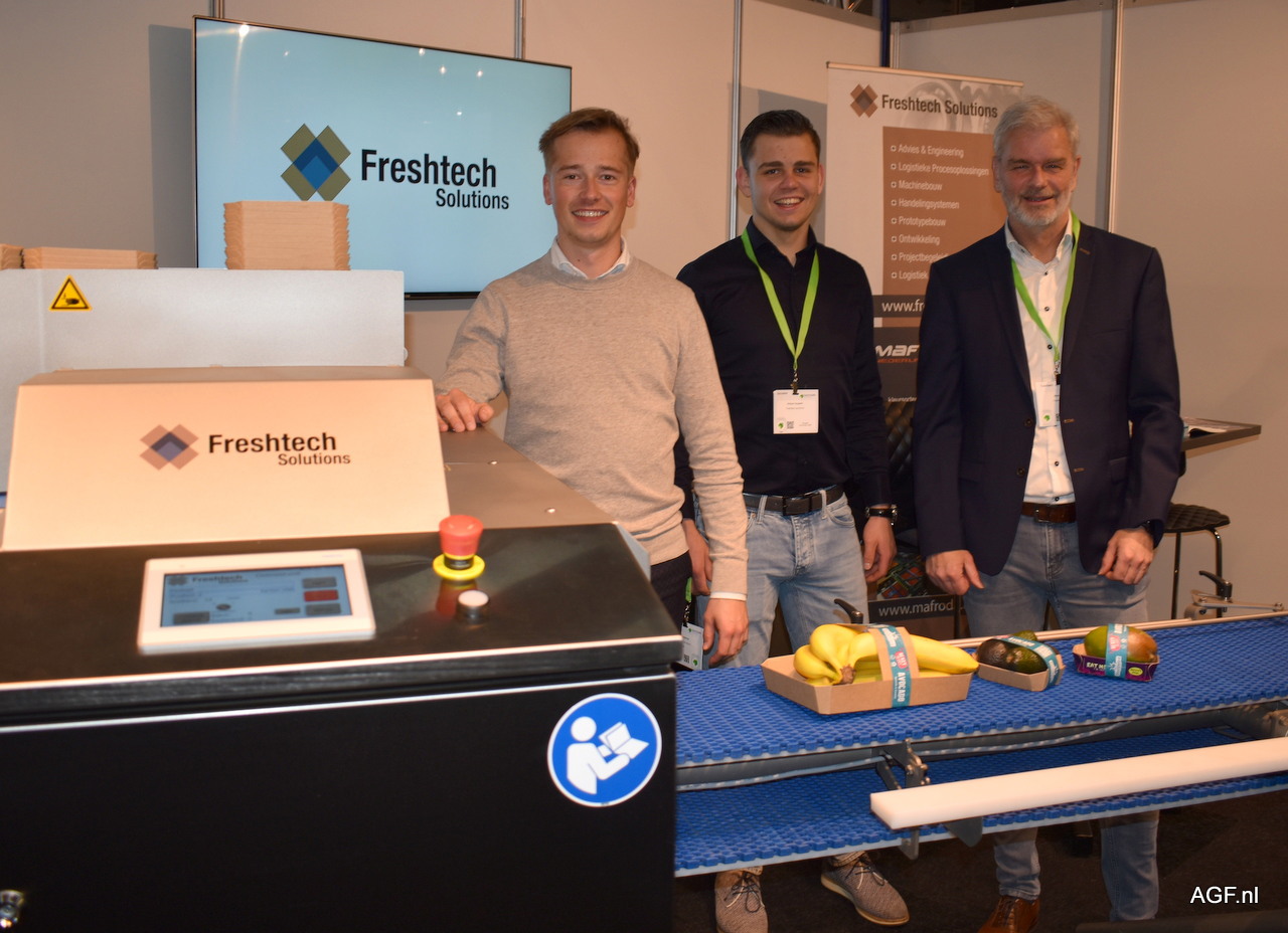 Freshtech Solutions: Roy Osephius, William en Michel Koppert. De machine is een universele ontnester voor het ontstapelen van schalen van verschillende  formaten en kunststof en karton. De machine kan 120 schalen per minuut verwerken. Het programma omvat 32 mogelijkheden, zo kan een bedrijf snel schakelen in de verschillende shifts. Met model IP 65 kan ook in natte ruimte worden gewerkt.