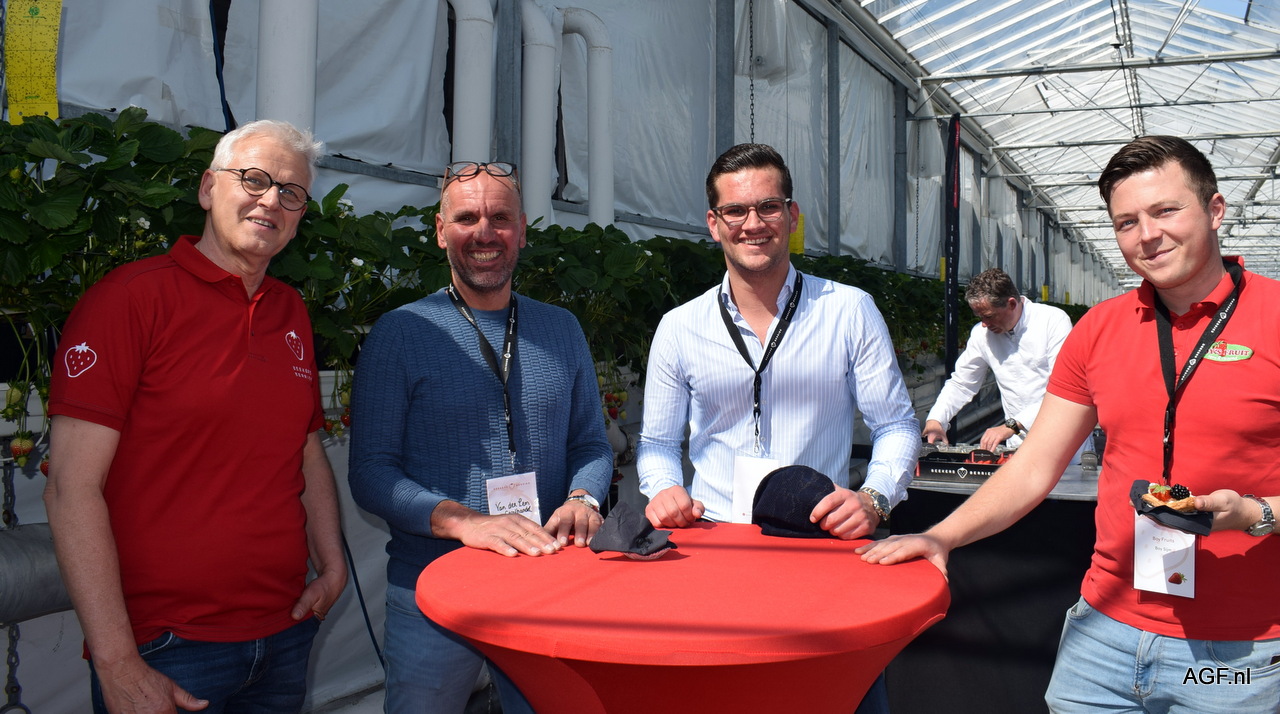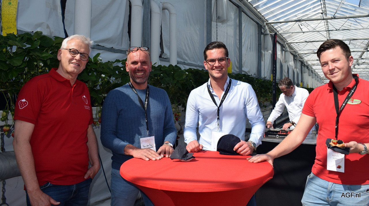 Wil Beekers aan tafel met Bart en Rick Zwart (Van der Lem Groothandel) en Boy Sijm (Boy Fruit)