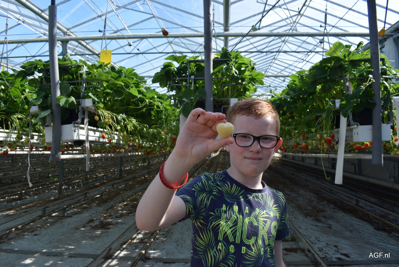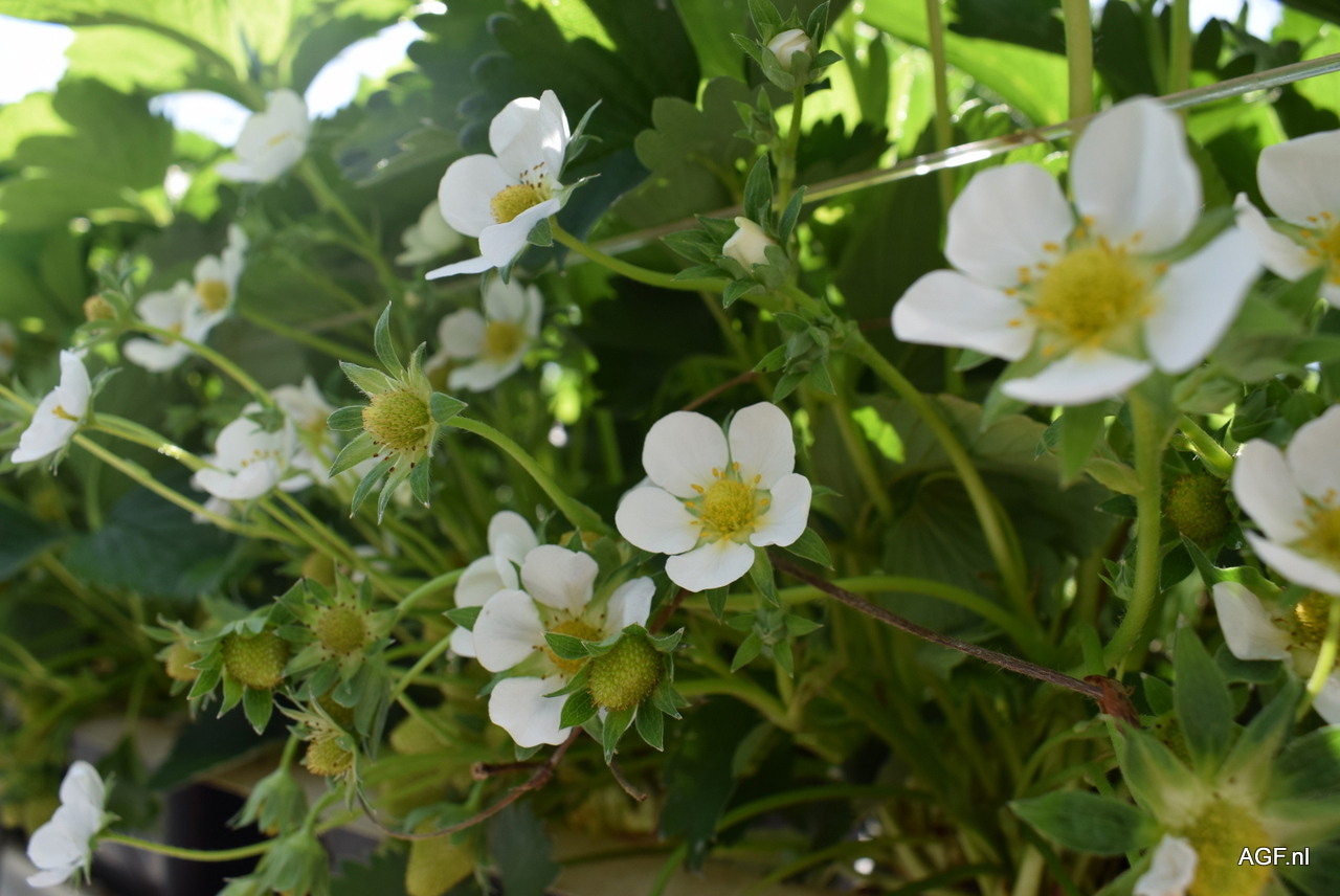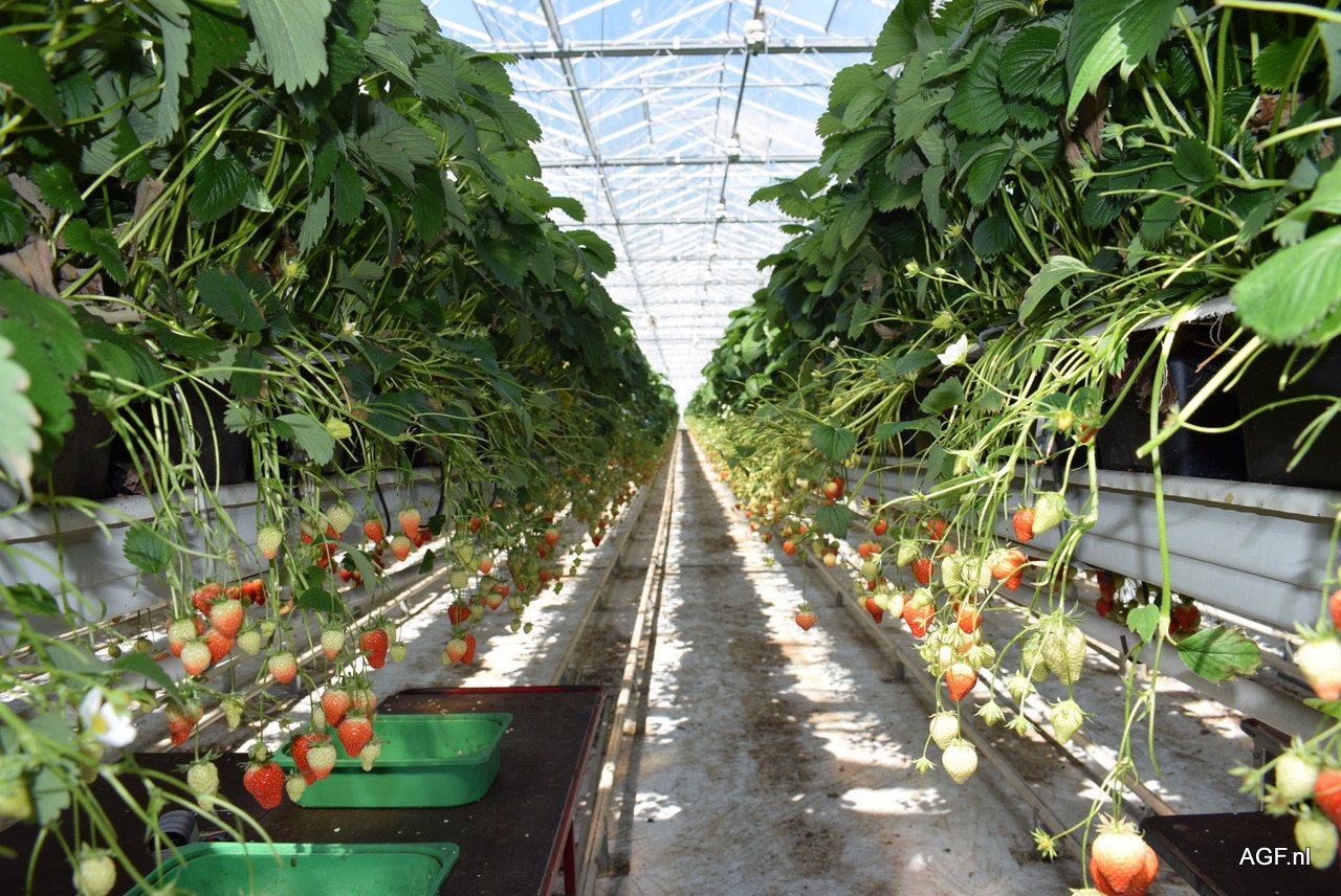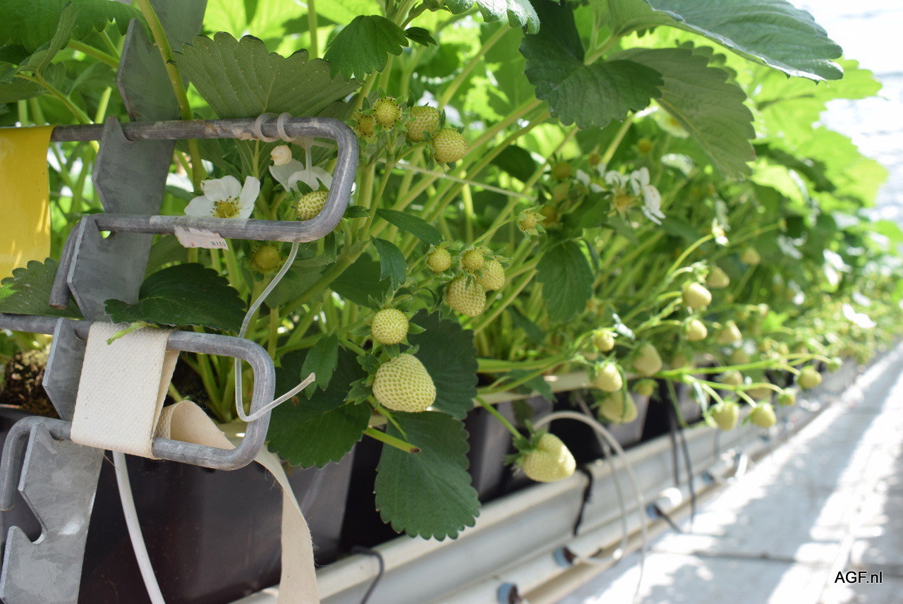 Aardbeien in dezelfde kas met verschillende groeistadia, hoe eerder uit de koeling gehaald, hoe verder ze zijn