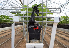 Ingang van de buis die zorgt voor water en voedingsstoffen van de plant. Overtollig water wordt opgevangen en gerecycled.