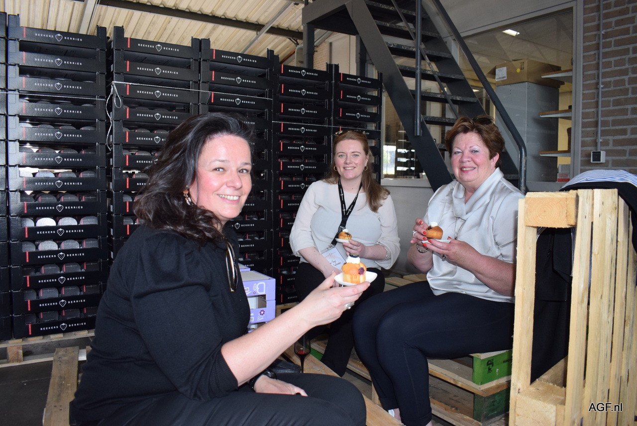 Marcella en Mararet van AGF De Graaf (Aubergine) met Jennifer (Van Rijn Culinair) hadden een rustig zithoekje gevonden om te genieten van de muffins