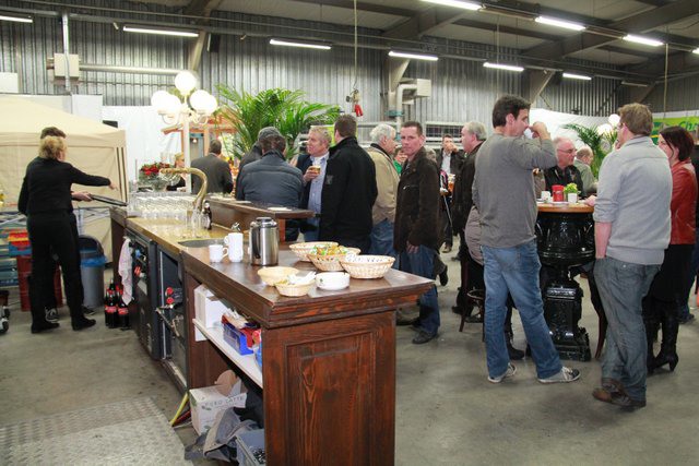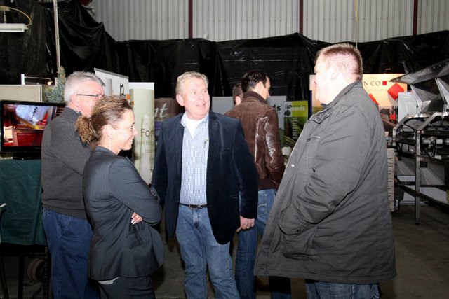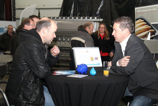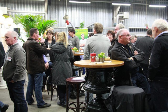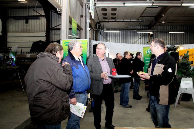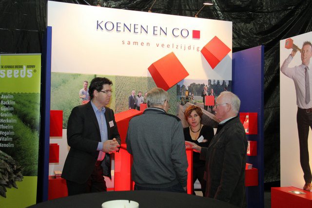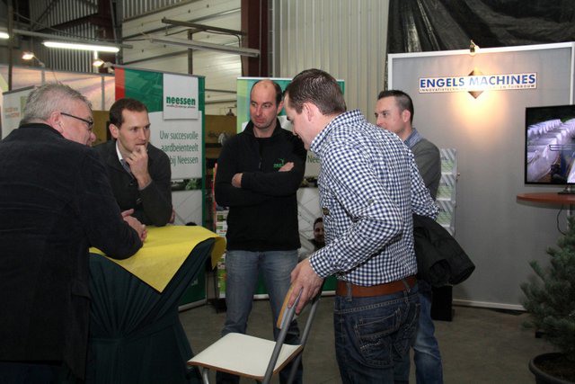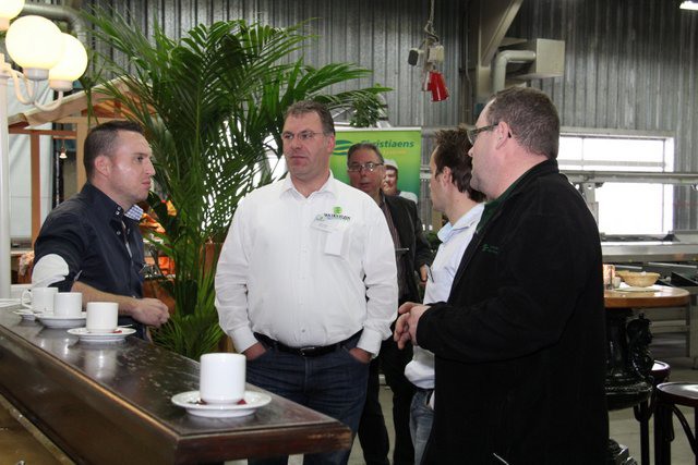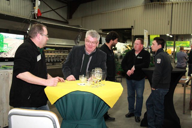 Meneer Peeters van Mertens in gesprek met Piet Beurskens van Limseeds en meneer Peeters in gesprek met Paul Reijnders