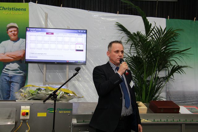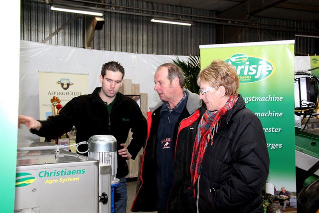 Nick Jacobs van Christiaens geeft uitleg over de aspergemachine