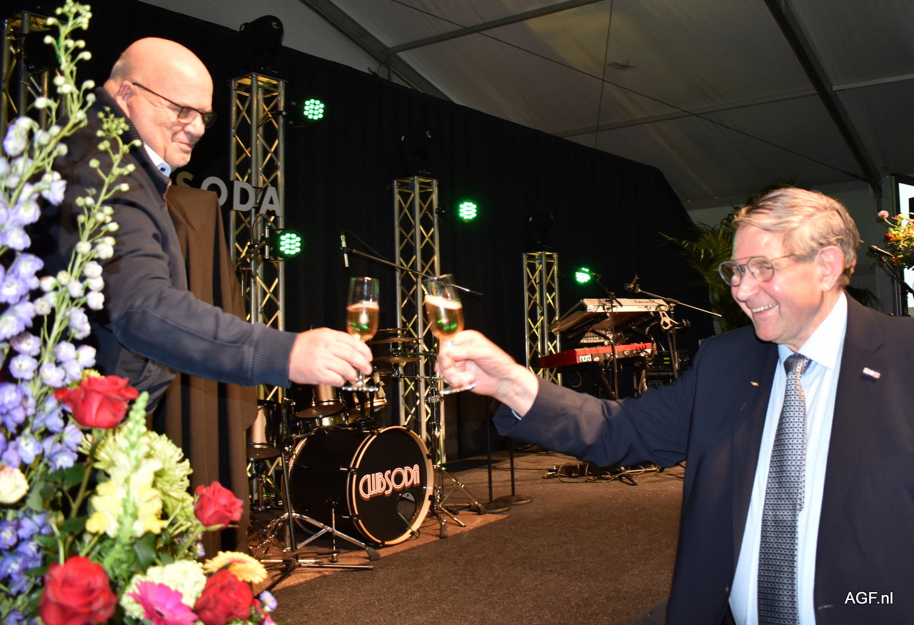 De nieuwe en scheidende voorzitter Peter van Dijck en Ton Holthuijsen. Ton blijft actief in de rol van adviseur.