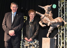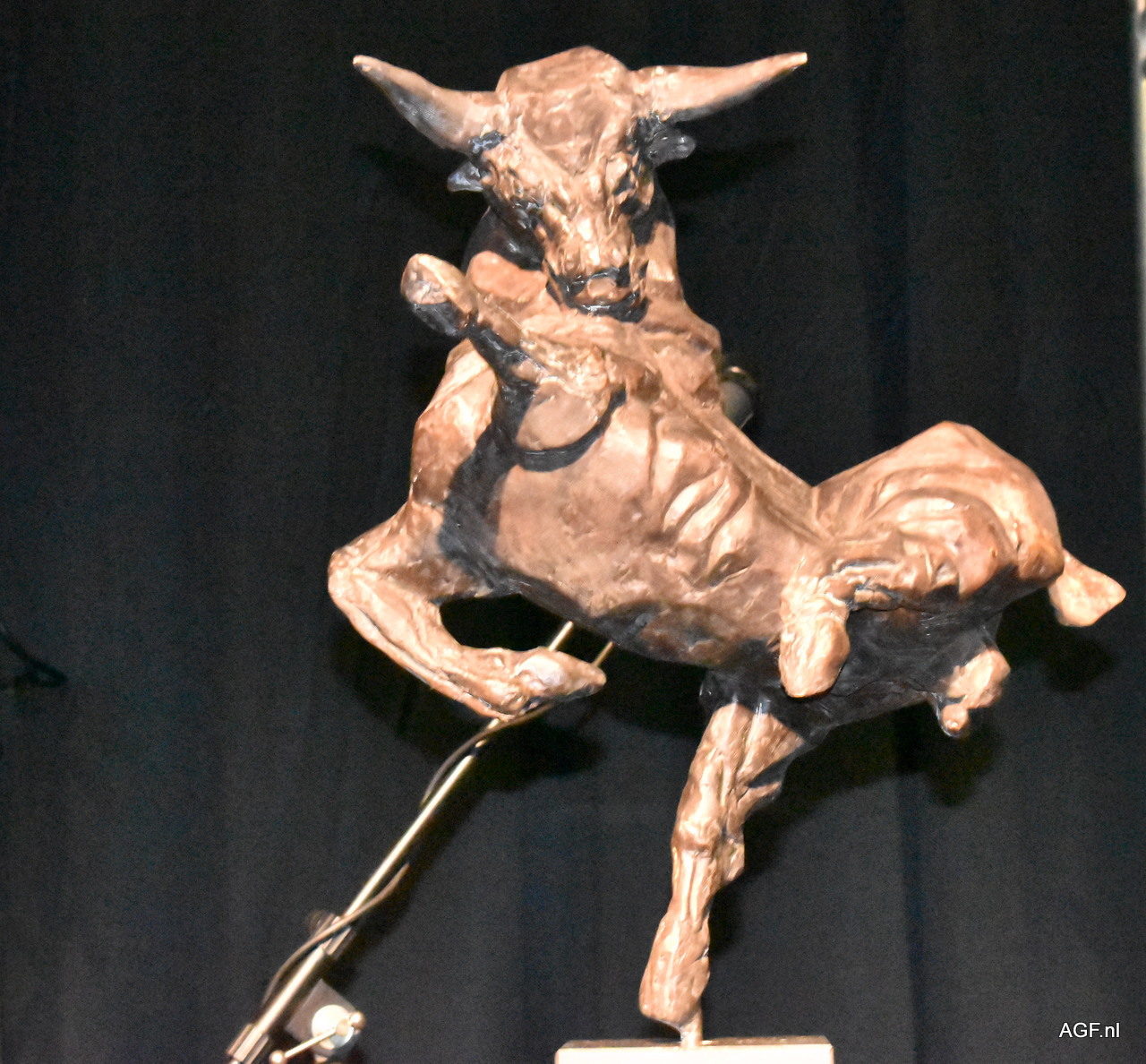 Een prachtig bronzen beeld als afscheidscadeau. Het symboliseert de verschillende karakters van Ton die tijdens de speeches naar voren kwamen.