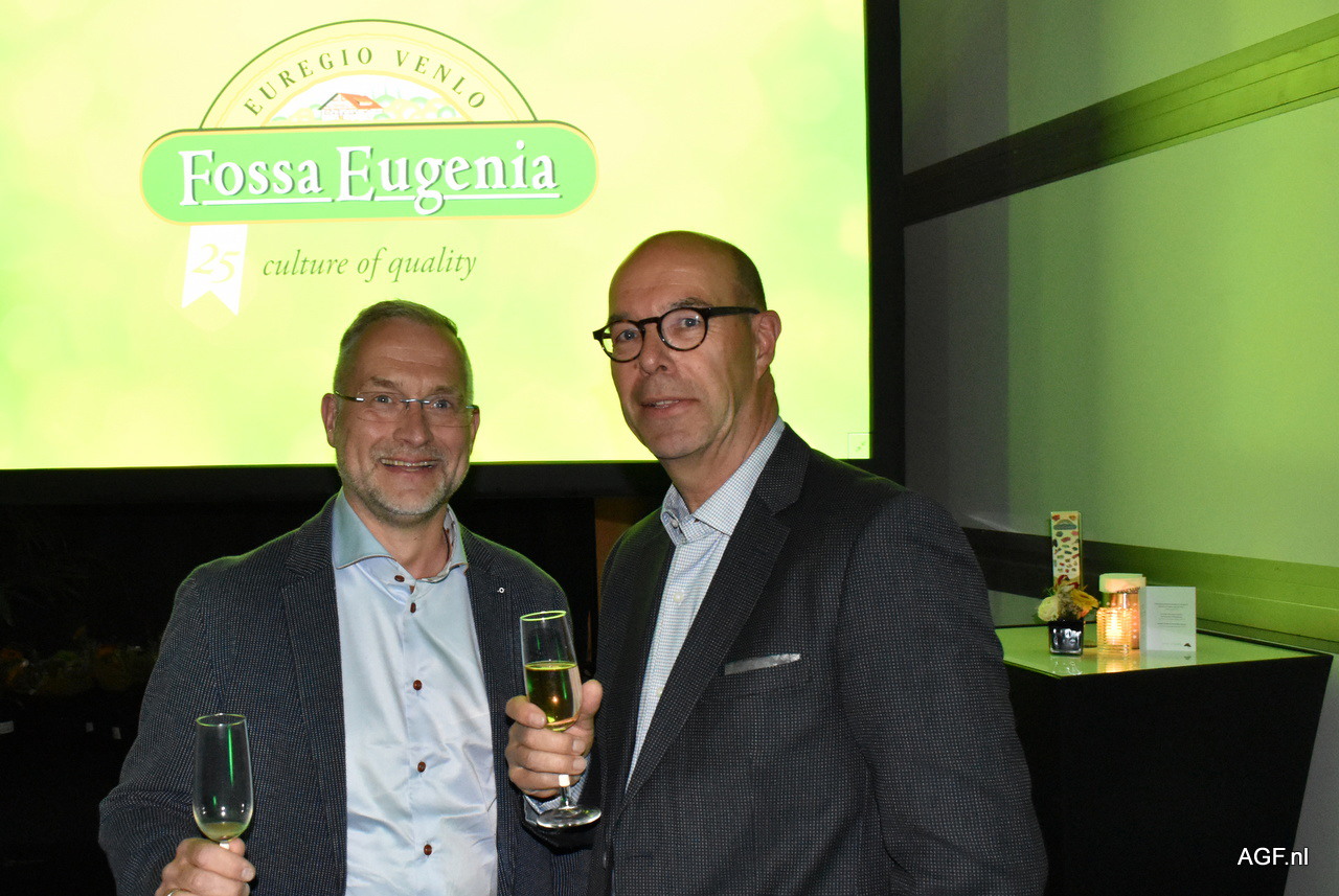 Erik Bovee van Rabobank en Eric Geurts die als tomatenteler al 25 jaar lid is van Fossa Eugenia.