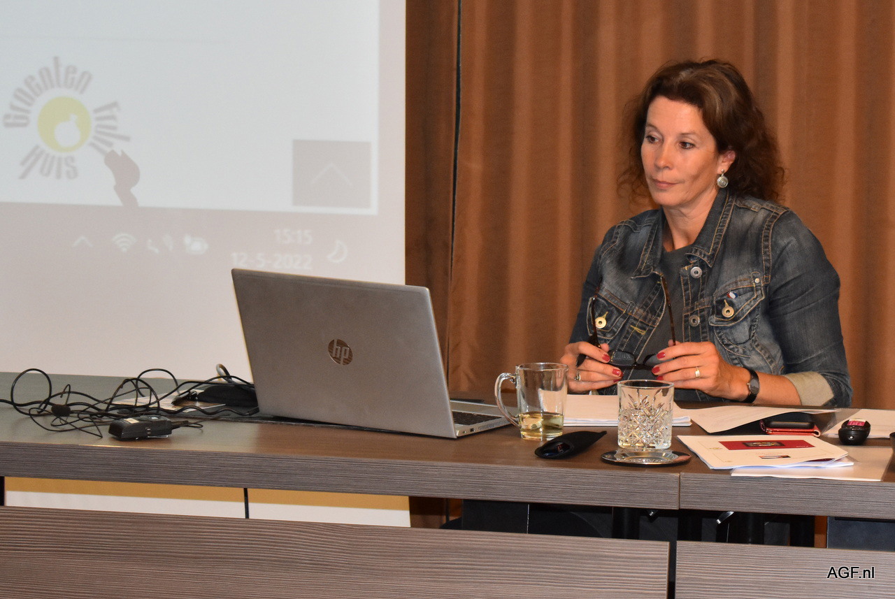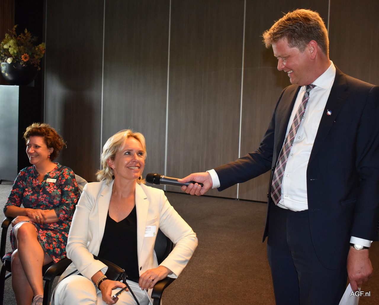 Janine Luten directeur GroentenFruit Huis grapt met de voorzitter.