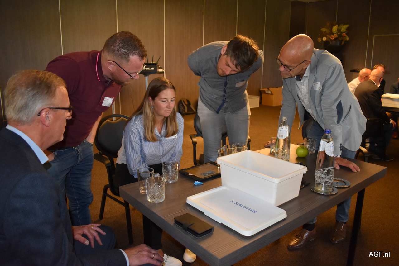 Linda Schokker en Karl van de Wiel van Agro Centre Holland BV, Jan Franje van Franje Onions en Jim Hoogzand van Hoza Zaden.
