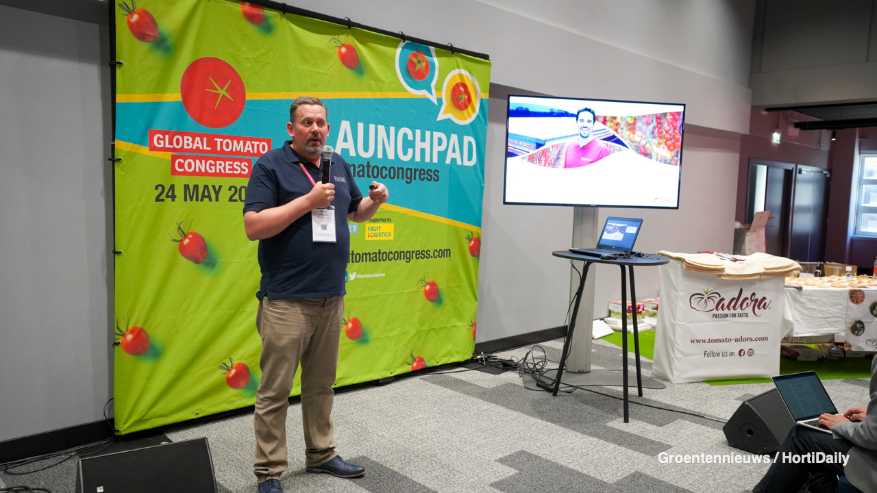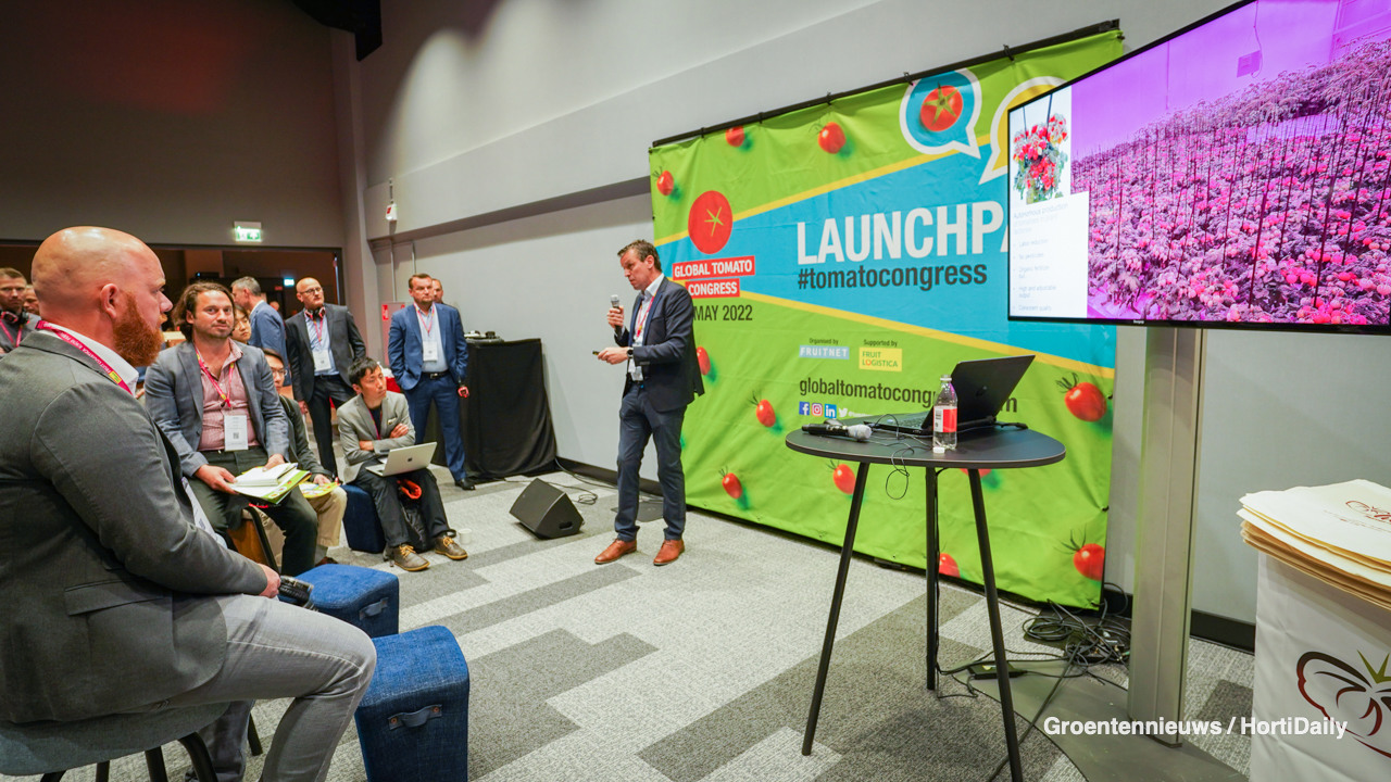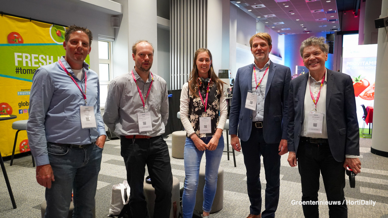 Wilfred Scheffers van Plantfactory / TomaTech met Julia Parrry en Alan Craig van A. Gomez.