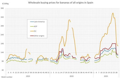 "Bananenmarkt gaat steeds meer naar contracten, maar sommige telers prefereren spotmarkt na hoge prijzen"