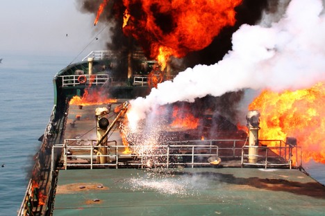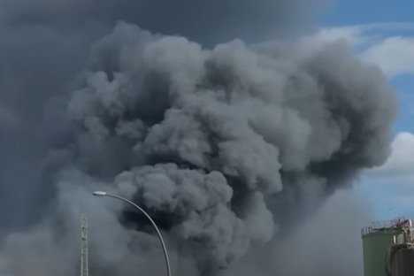 Brand Chiquita Voyager bij Amerikaanse fruitimportterminal