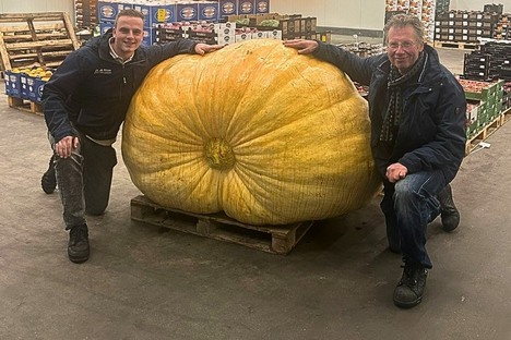 Groentehandelaar krijgt pompoen van tegen de 600 kilo binnen