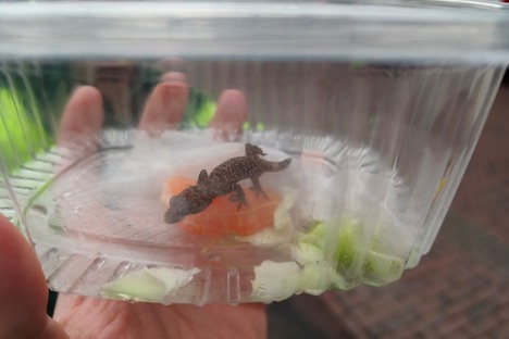 Gekko aangetroffen tussen aardbeien uit Griekenland